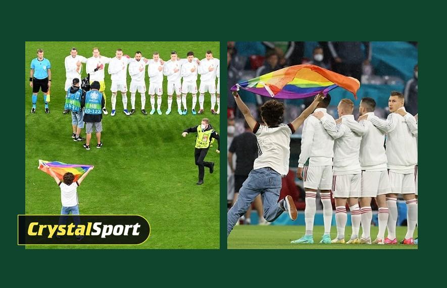 გერმანიისა და უნგრეთის მატჩის დაწყებამდე, როდესაც ქვეყნების ეროვნული ჰიმნები უნდა შესრულებულიყო, მოედანზე გულშემატკივარი შეიჭრა, რომელსაც ხელში LGBT დროშა ეჭირა.