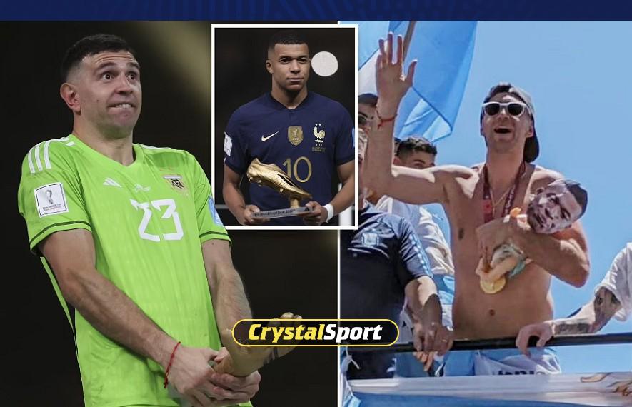 Emiliano Martínez carried a baby toy with Mbappé's face on it during the victory parade in Argentina today! ???????????? pic.twitter.com/hd6FmiaPb2