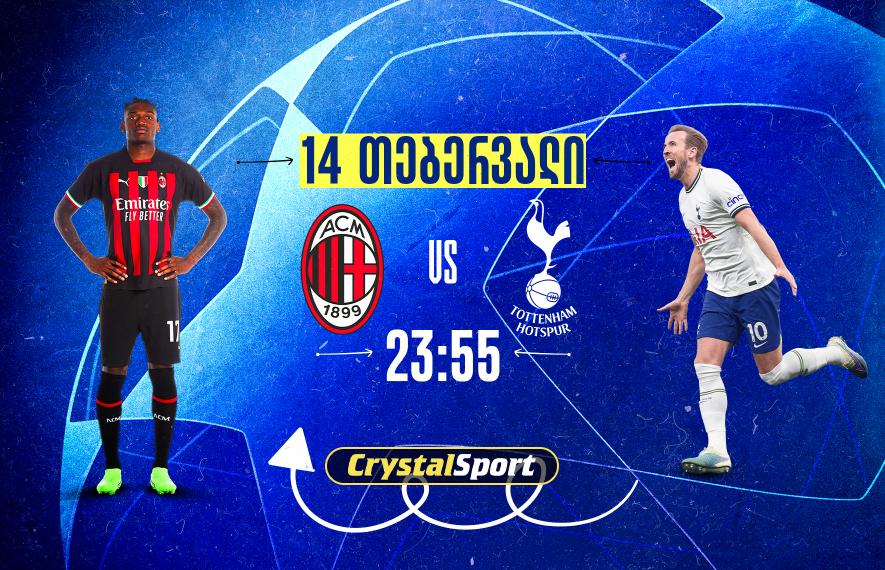 შეგახსენებთ, რომ „მილანისა“ და „ტოტენჰემის“ წყვილის გარდა, ხვალ პსჟ-სა და „ბაიერნის“ დაპირისპირებაც შედგება. ორივე შეხვედრა საქართველოს დროით 23:55 საათიდან დაიწყება.