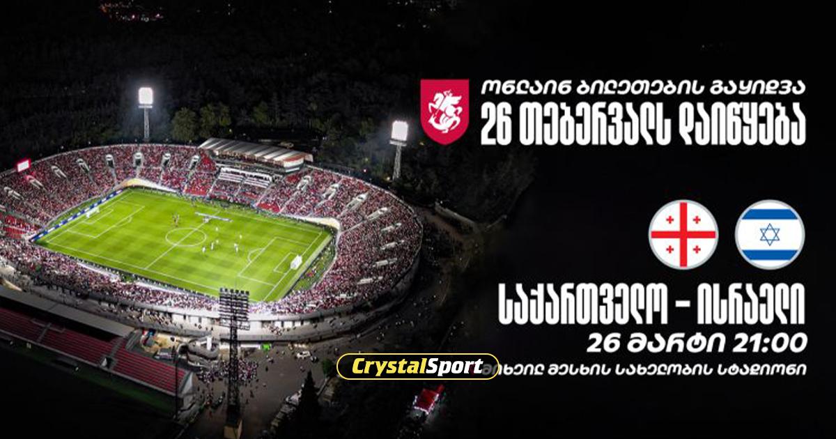 საქართველოს ეროვნული ნაკრები წლის პირველ მატჩს ისრაელის წინააღმდეგ გამართავს. ამხანაგური შეხვედრა 26 მარტს, 21:00 საათზე, მიხეილ მესხის სახელობის სტადიონზე გაიმართება.