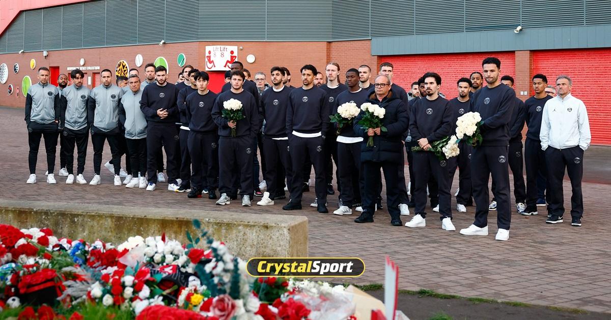 Le président Nasser Al-Khelaïfi, accompagné de l’ensemble du groupe sportif, a rendu hommage aux victimes de la tragédie d’Hillsborough, avant de se recueillir sur le mémorial dédié à Diogo Jota et à son frère André Silva, à Anfield, en amont du match face à Liverpool ce mardi.… pic.twitter.com/Jyx9UiCFyn
