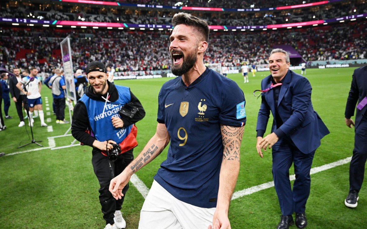 ინგლისი - საფრანგეთი 1:2 11 დეკემბერი 2022 | 01:43 სამფეროვნების რიგებში თითო ბურთი ორელიენ ჩუამენმა და ოლივიე ჟირუმ გაიტანა - ორივე მათგანს ასისტენტობა ანტუან გრიზმანმა გაუწია